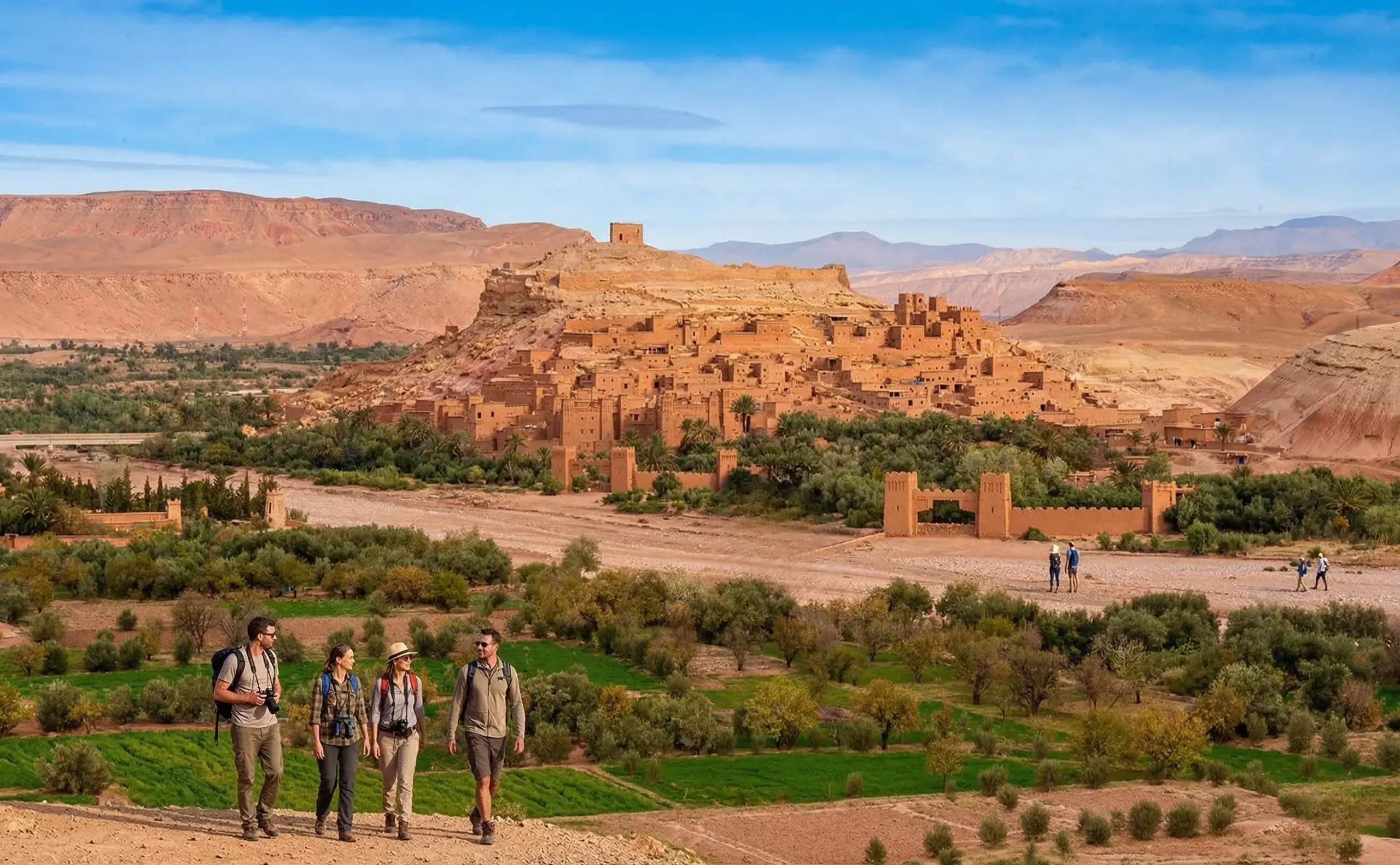 Along the way you will enjoy breathtaking views of traditional Berber villages and mountain landscapes before arriving at the famous Ait Ben Haddou Kasbah, a UNESCO World Heritage Site and one of the most iconic fortified villages in Morocco.