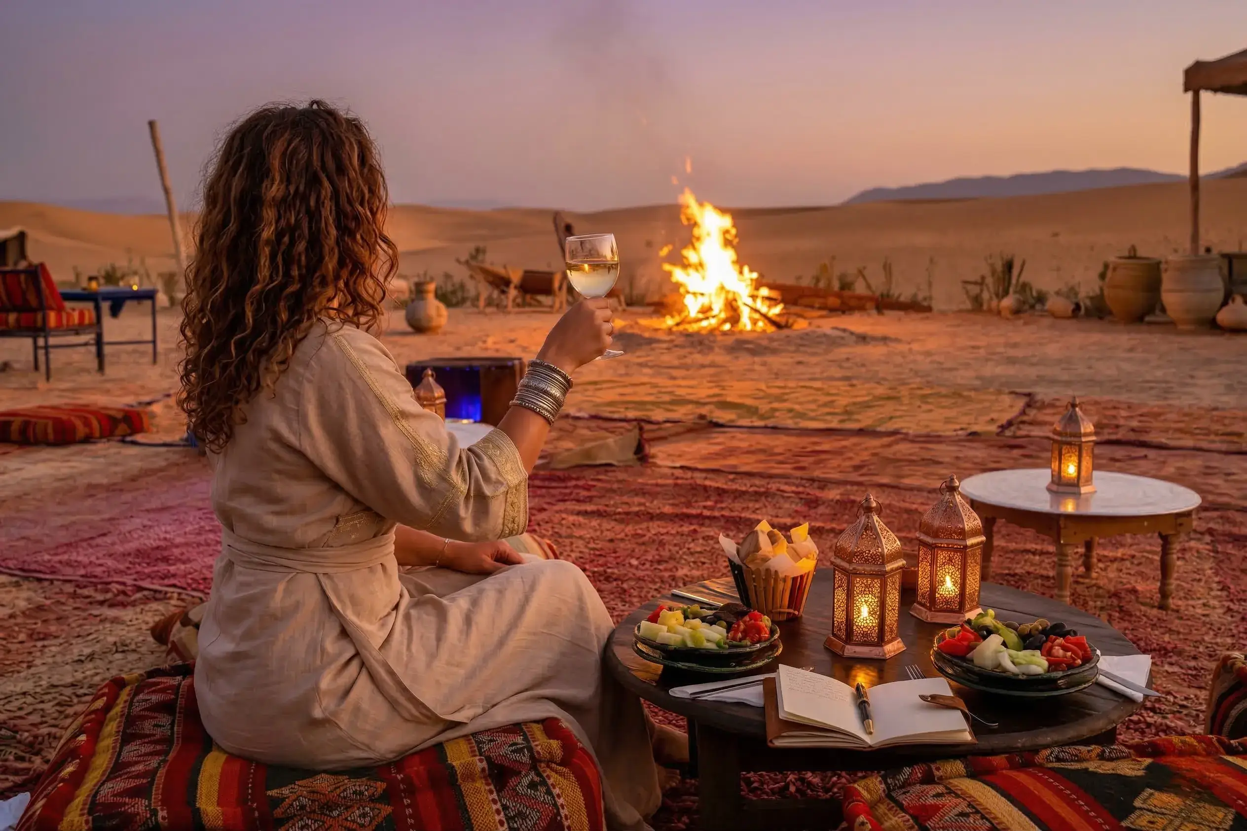 Enjoy a traditional Moroccan dinner followed by Berber music around the campfire under the stars.